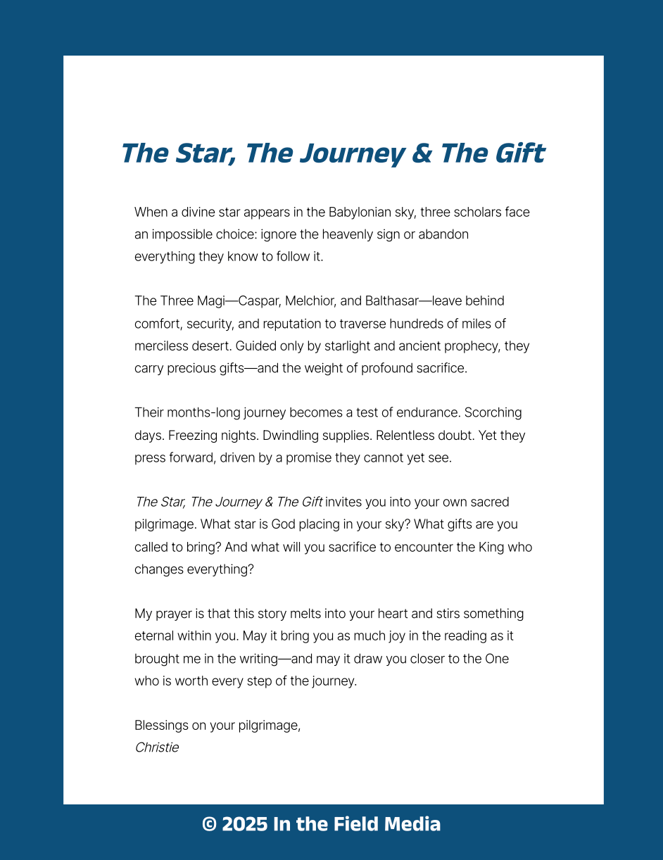 Transform your Christmas season into a time of spiritual pilgrimage, deeper worship, and renewed purpose. Download "The Star, The Journey & The Gift" today and begin your own sacred journey toward the One who is worth every step!